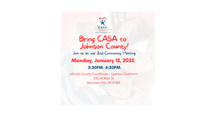 Come join us as we plan the next steps for bringing CASA to Johnson County. Even if you couldn't make the first meeting, we'd love to see you at this meeting!